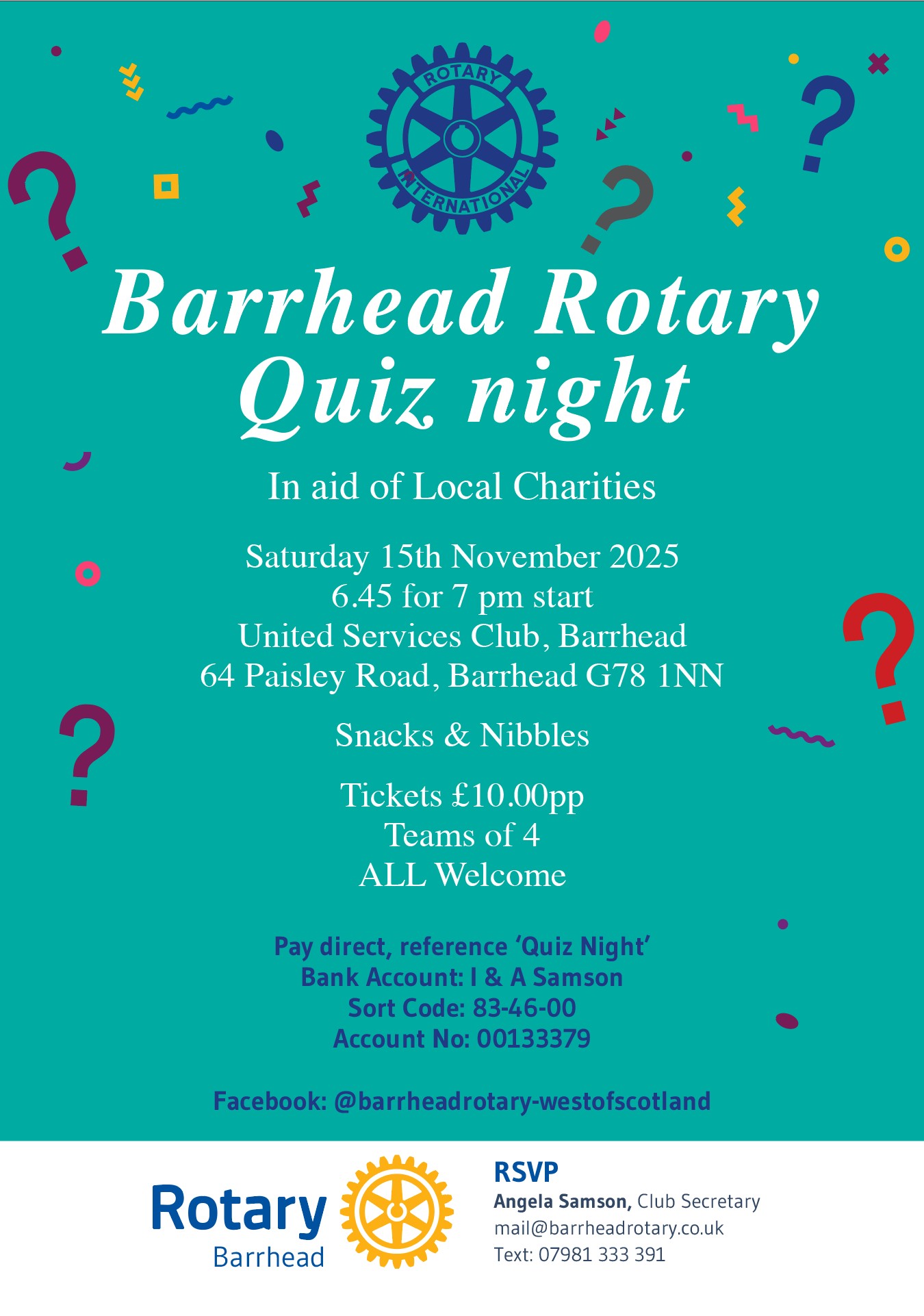 View Larger Image Quiz Night This listing has been expired. By Barrhead_Admin|2025-11-17T00:42:39+00:00May 22, 2025|Comments Off on Quiz Night Share This Story, Choose Your Platform! FacebookXRedditLinkedInWhatsAppTelegramTumblrPinterestVkXingEmail About the Author: Barrhead_Admin